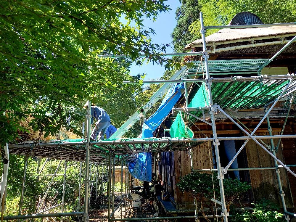 茅の葺替えもその後続けて皆さんで作業していたようです。屋根は広いので少しずつ作業。