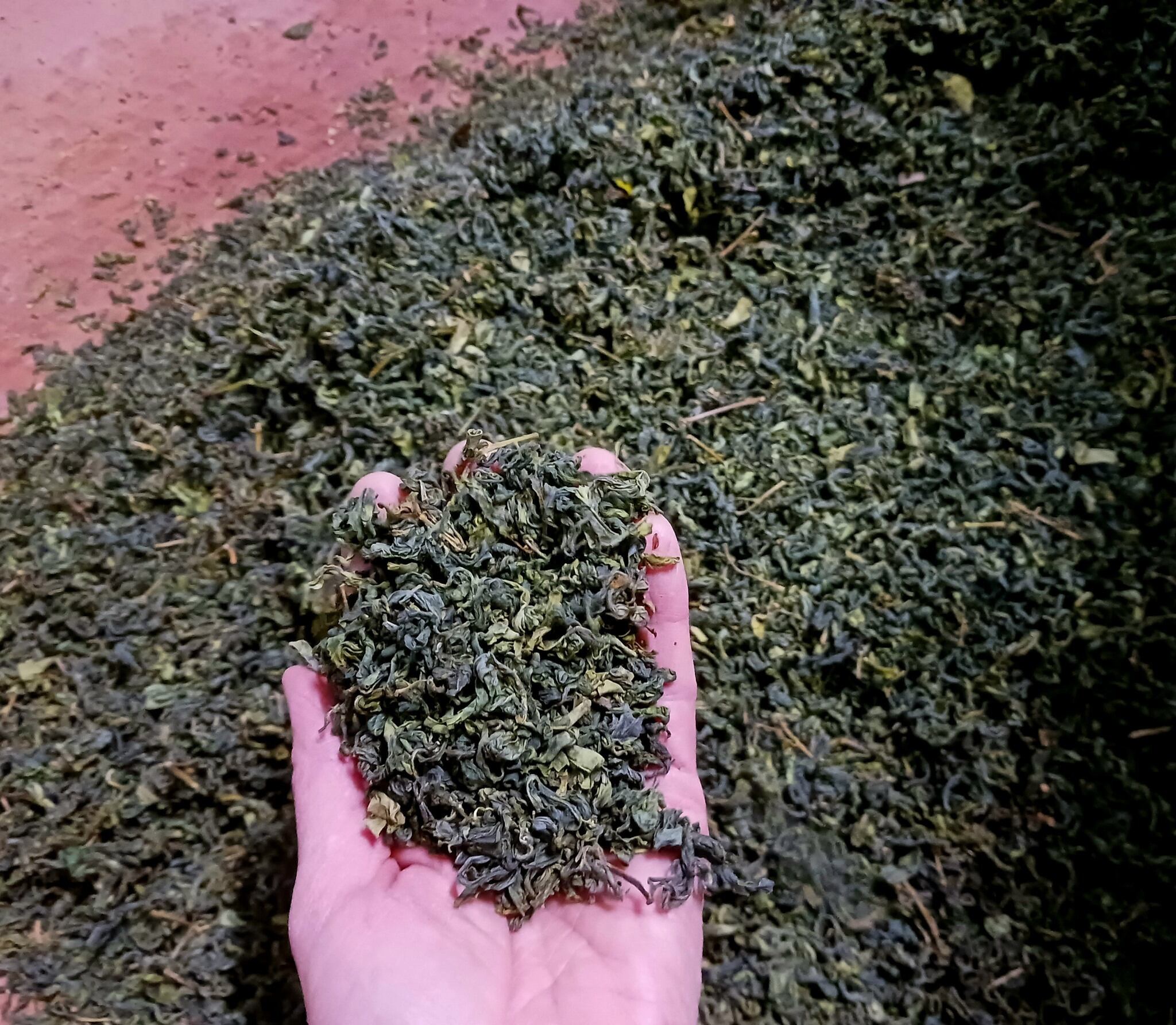 (烏龍茶に近い形状ですが半発酵茶の烏龍茶と違い、発酵させないため緑茶です)